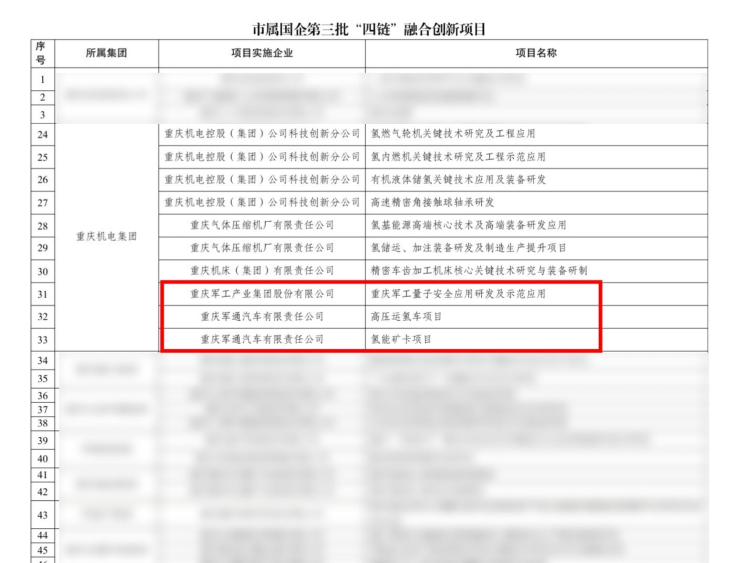 近日,重庆市属国企第三批“四链”融合创新项目正式发布。在全市66个、总投资超27亿元的重点项目中,军工产业集团有3个项目成功入选。本批次军工产业集团入围全市“四链”融合创新的3个项目,既体现前瞻谋划,又强调融合协同,将进一步强化现有产业的技术能级提升,也为未来新兴领域的布局奠定基础。