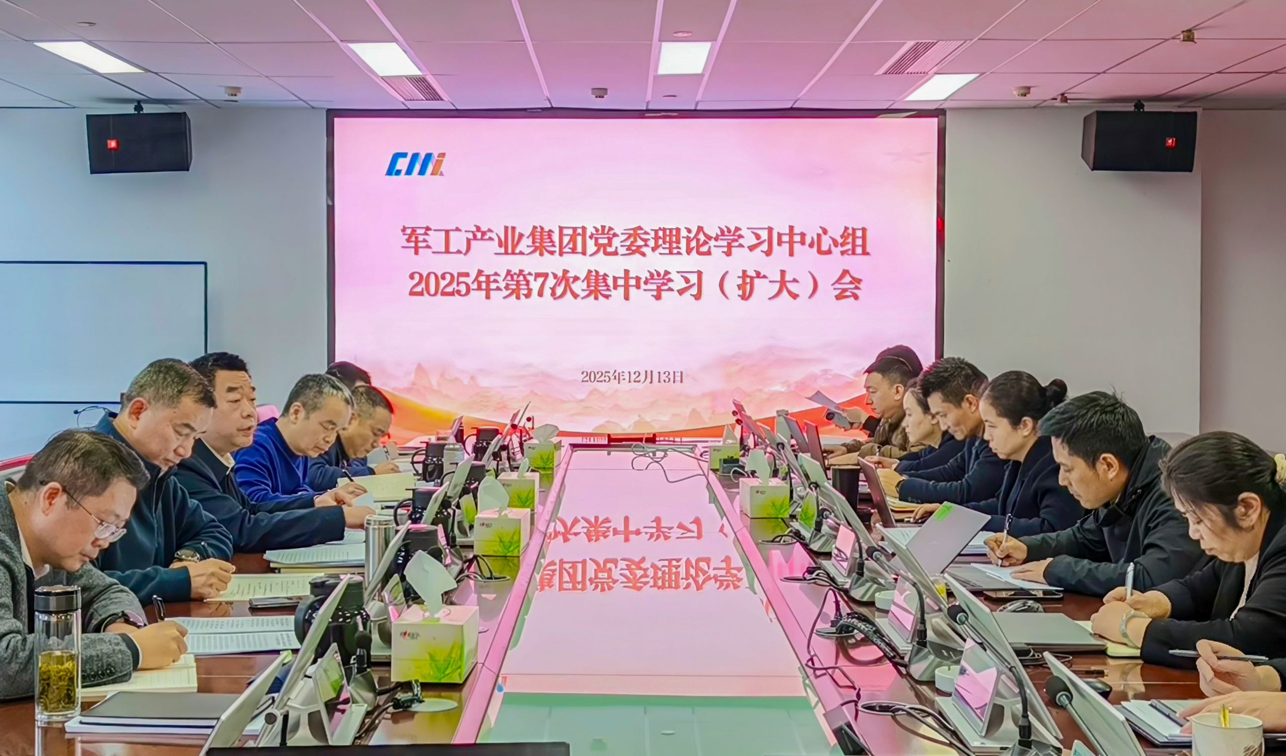 12月13日,军工产业集团党委理论学习中心组召开2025年第7次集中学习(扩大)会,重庆机电集团党委委员、副总经理,军工产业集团党委书记、董事长蒋敬旗主持会议。