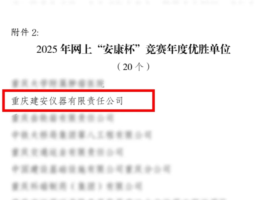 在重庆市总工会开展的“扛起新使命 建设新重庆”2025年网上劳动和技能竞赛活动中,建安仪器从全市1471家参赛单位中脱颖而出,荣获网上“安康杯”竞赛“年度优胜单位”称号,且是市机械冶金工会系统中唯一获此殊荣的企业。活动期间,公司高度重视、精心组织,扎实开展线上线下系列竞赛活动,充分展现出公司扎实的安全管理基础与职工良好的安全素养。